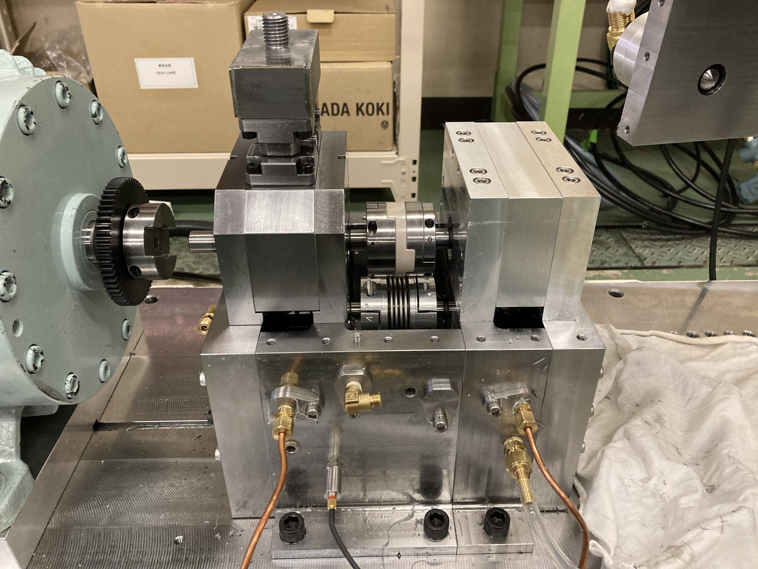 e-Axle 高回転トラクションドライブの基礎特性 高速でのトラクション特性を表現する数値計算モデルを作成,これを用いてトラクション係数が20%向上するテクスチャを創出しました.また高回転かつ実車相当の高出力での評価を可能とする,転がり摩擦試験機の開発にも取り組んでいます. 50000rpm,50kW動力循環式転がり摩擦試験機 テクスチャのEHLトラクション計算結果 トラクション変速機